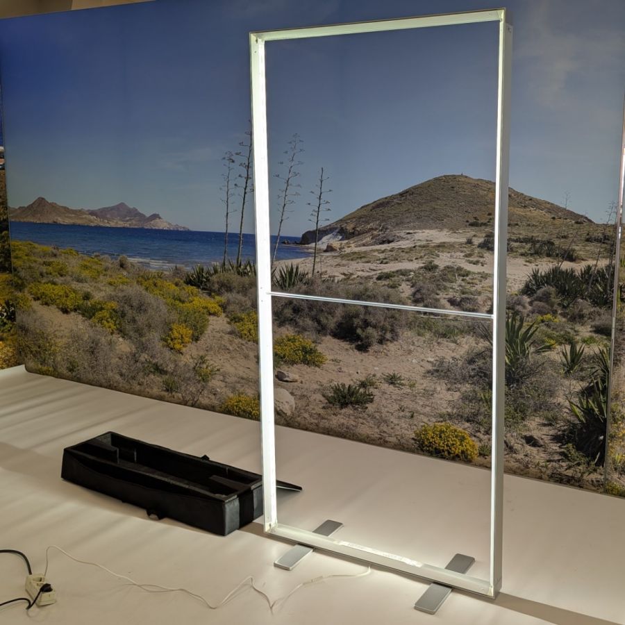 Incluye 2 telas backlight impresas (una por cada cara), confeccionadas con burlete de silicona para colocación rápida y ajuste perfecto. Impresión con tintas ecológicas certificadas GREENGUARD GOLD: colores vivos, gran definición y un resultado profesional pensado para uso intensivo en entornos comerciales.