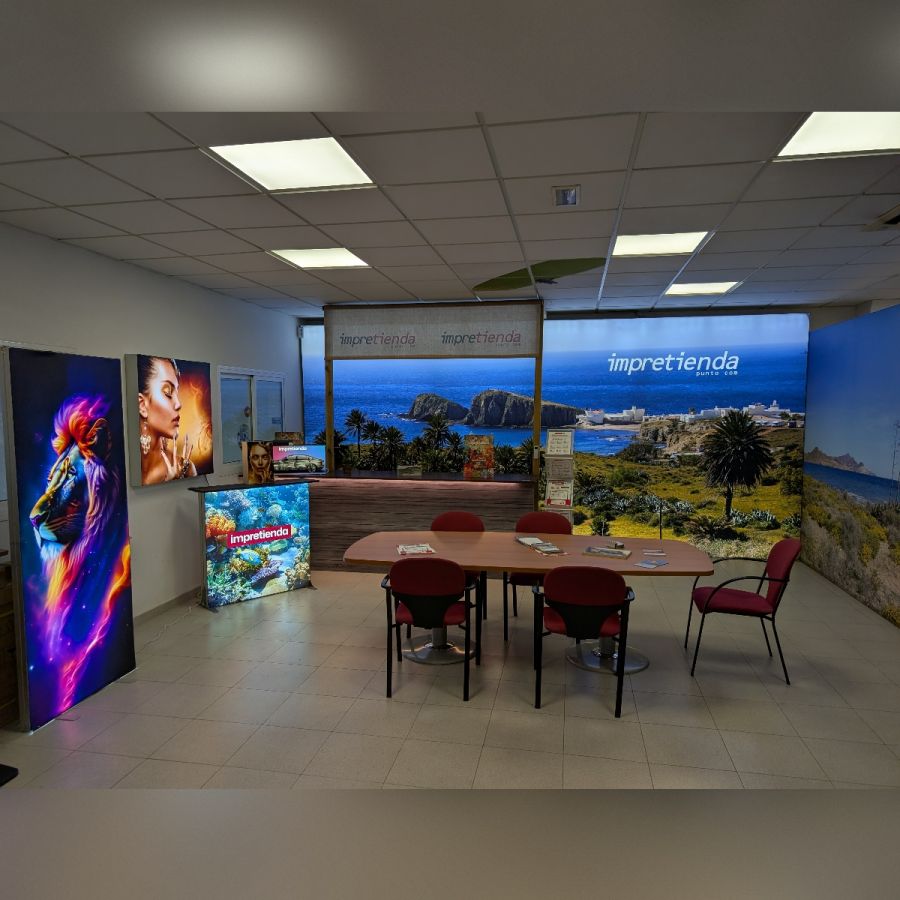 En Impretienda, te ofrecemos este producto con impresión textil en tela backlight certificada FR, confeccionada con silicona perimetral para facilitar el montaje y asegurar la tensión perfecta del tejido.